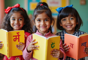 Learning Hindi in our class is a fun way for kids to share their thoughts, get better at speaking, and confident. It helps them be creative and keeps them busy with stories, songs, and fun activities!